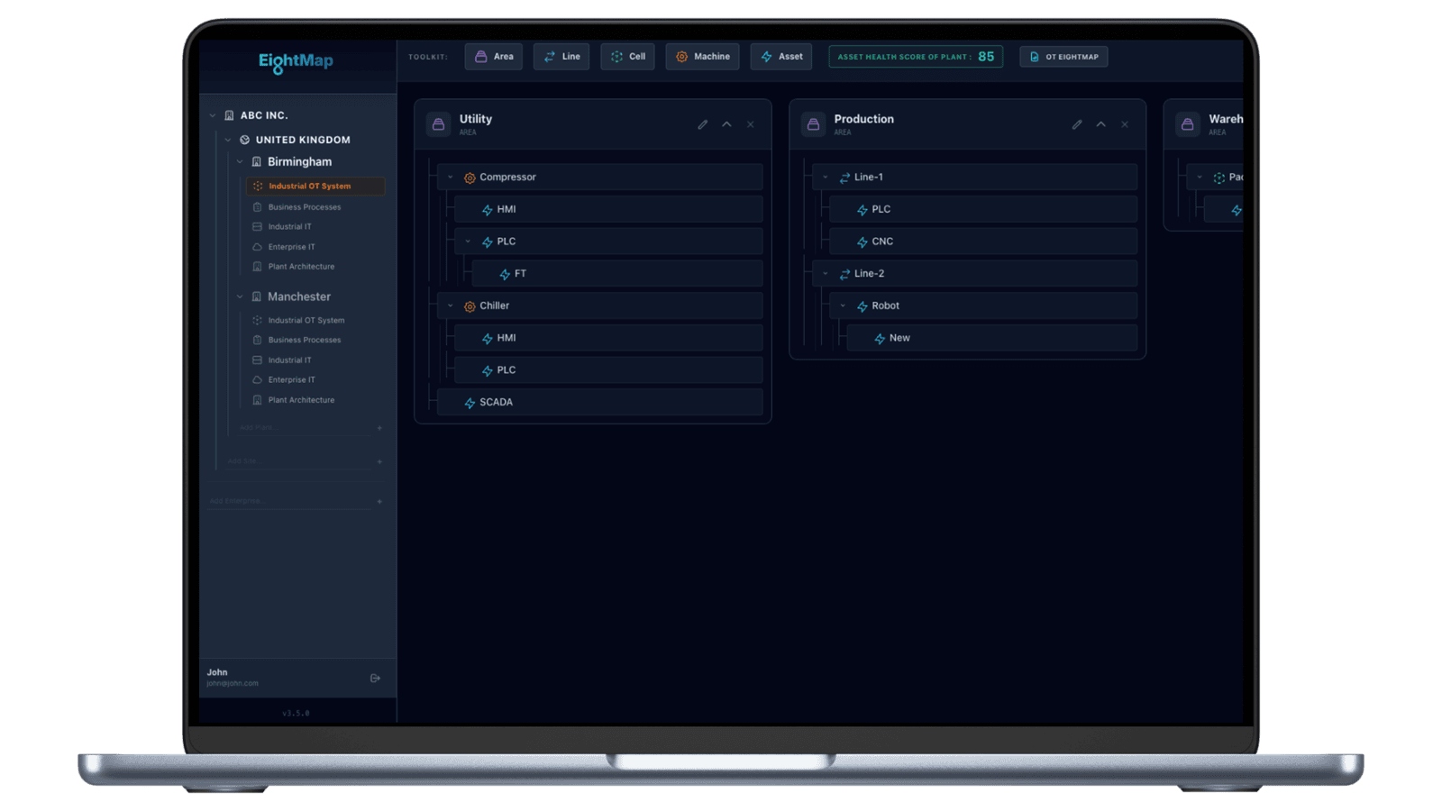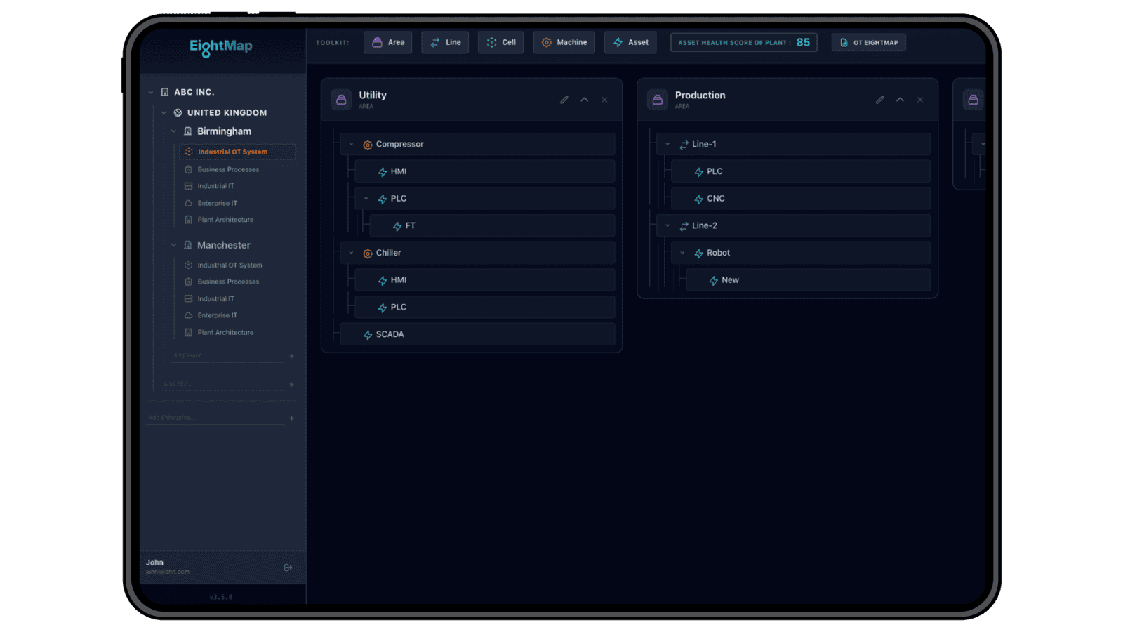 Manufacturing Landscape Assessment is the systematic process of mapping a factory’s Technology (OT & IT assets), business processes and people. Unlike a standard audit, Eightmap’s assessment creates a "living map" that identifies gaps in readiness & gives maturity scores for Industry 4.0 and Industrial AI adoption.